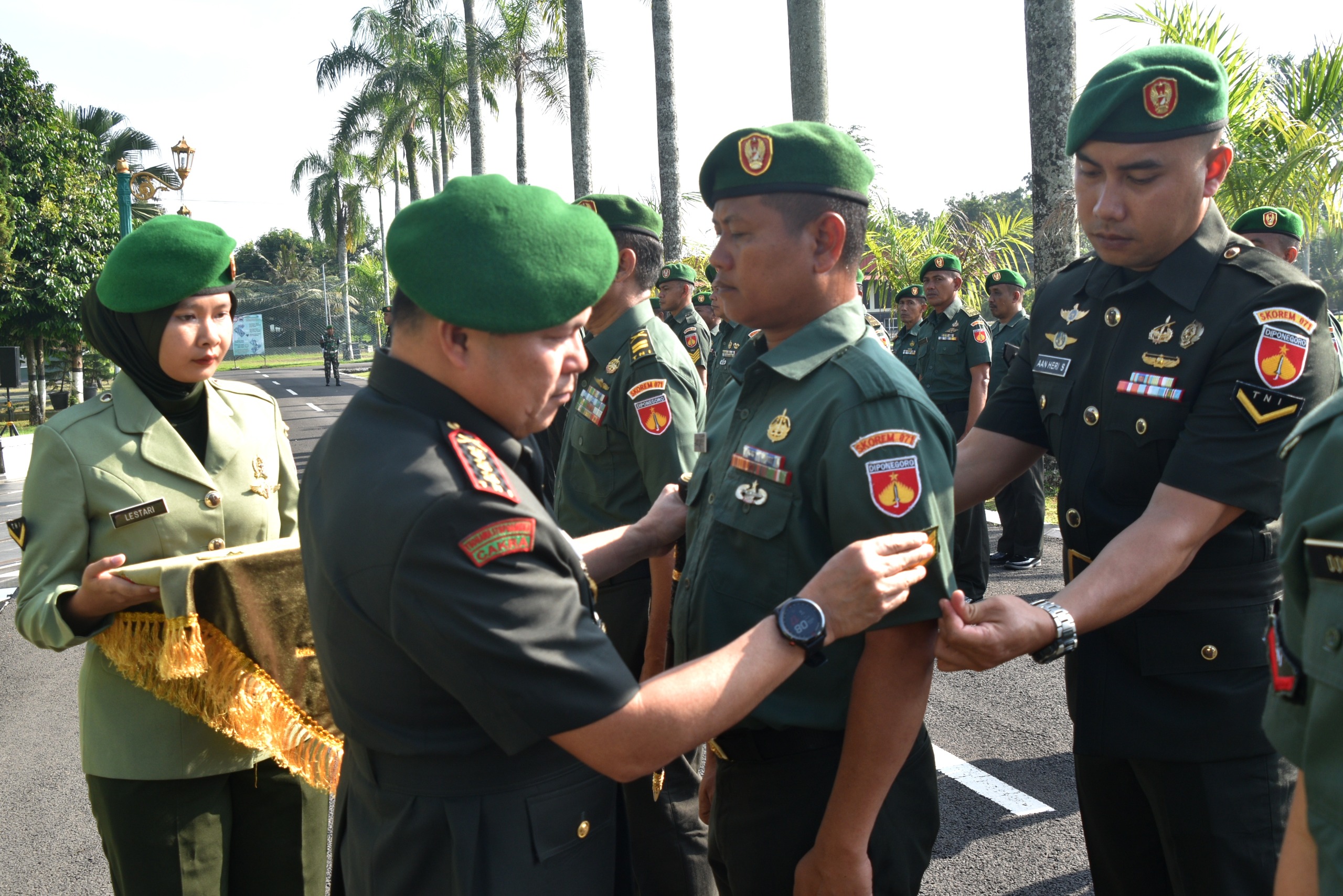 BANYUMAS – 14 personel Korem 071/Wijayakusuma naik pangkat, personel yang naik pangkat terdiri dari 1 Pamen, 1 Pama, 8 Bintara, dan 3 Tamtama, termasuk didalamnya 1 Bintara yang mendapatkan kenaikan pangkat penghargaan.