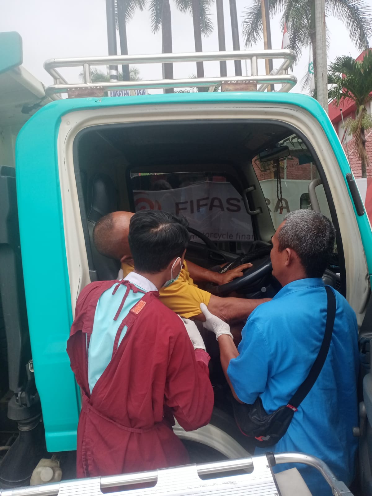 “Saat saya istirahat sekitar pukul 01.00 Wib, saya tidak tau kalau ada truk lain yang juga berhenti dibelakang truk saya, sekitar jam 9 saya hendak jalan namun saya turun untuk cek kondisi truk. Namun truk dibelakang saya tidak jalan, lalu saya ajak rekan untuk melihat dalam truk tersebut namun pengemudi tidak merespon, lalu saya melaporkan ke Security pabrik yang berada di seberang lokasi.” Ungkapnya.
