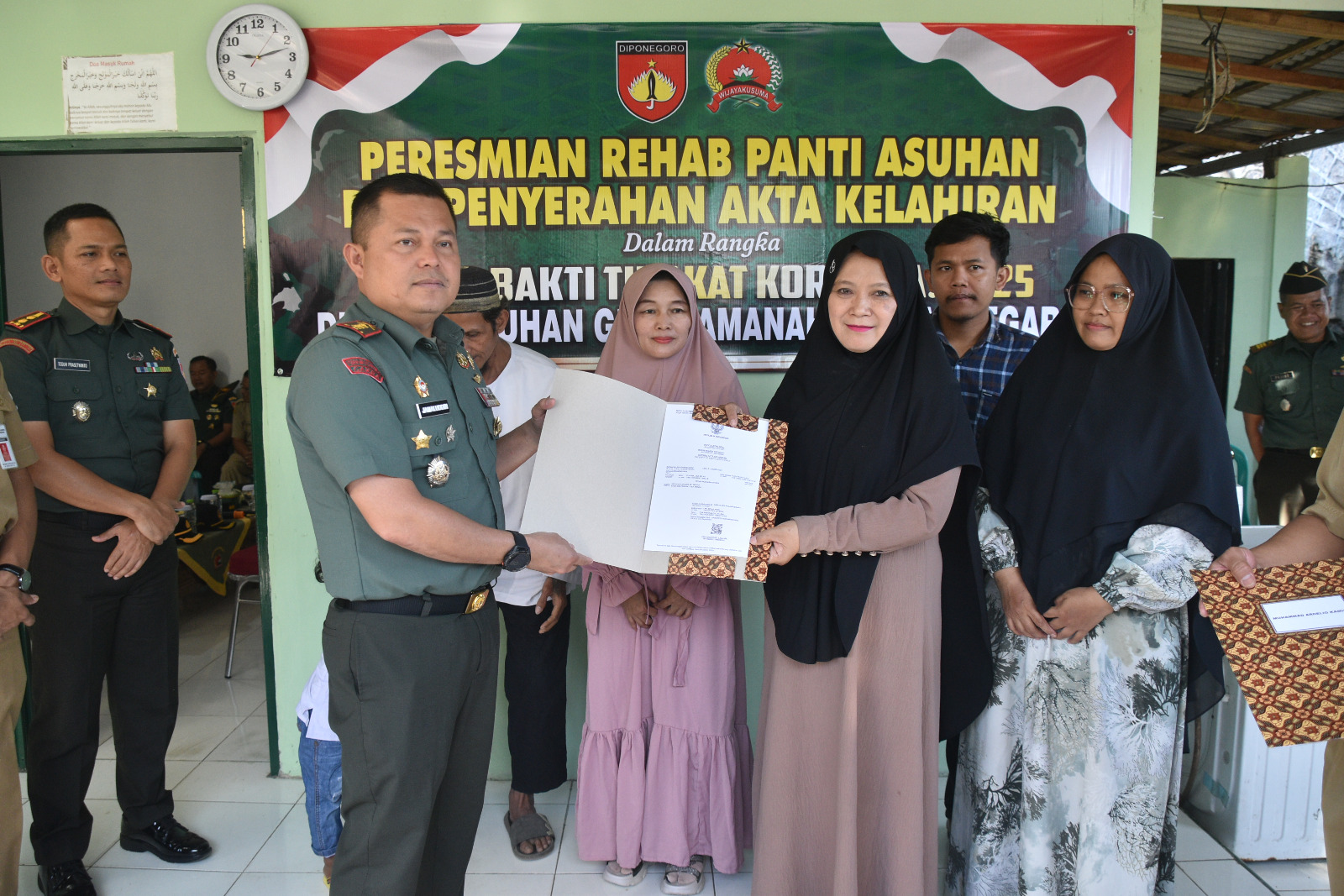 BANYUMAS – Danrem 071/Wijayakusuma Kolonel Inf Jamaluddin, S.I.P., M.I.P., resmikan rehab panti asuhan Griya Amanah dan menyerahkan akta lahir bagi masyarakat Banjarnegara, Selasa (29/4/2025) di Desa Parankancanggah Kecamatan Banjarnegara Kabupaten Banjarnegara.