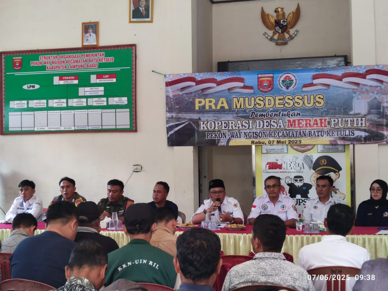 Lampung Barat, Gebrakkasus. Com – Dalam semangat membangun kemandirian ekonomi masyarakat, Musyawarah Desa Khusus (Musdessus) digelar di Balai Pekon Wayngison, Kecamatan Batu ketulis, Kabupaten Lampung Barat, pada Jumat, 9 Mei 2025. Agenda utama Musdessus kali ini adalah pembentukan kepengurusan Koperasi Desa “Merah Putih” sebagai langkah konkret dalam pemberdayaan ekonomi warga.
