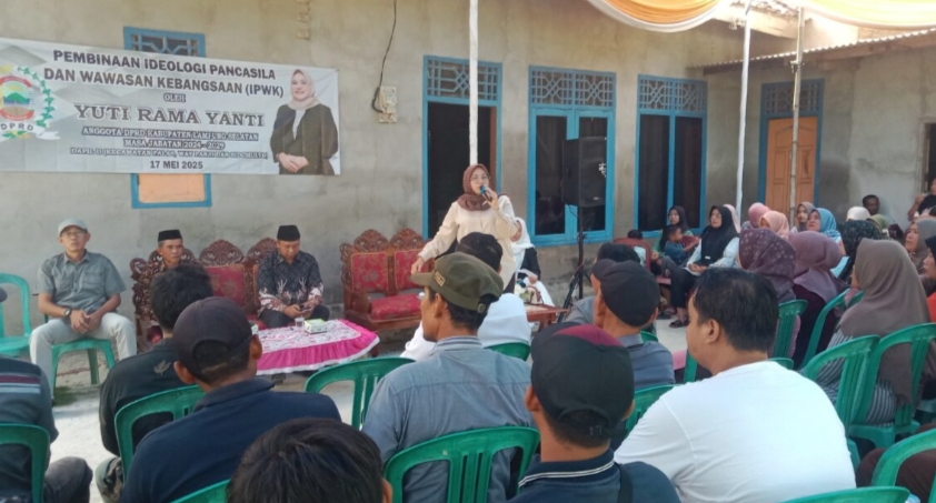 LAMSEL,–Dari Partai Gerindra, Yuti Rama Yanti Anggota DPRD kabupaten Lampung Selatan, melaksanakan sosialisasi Pembinaan Ideologi Pancasila dan Wawasan Kebangsaan (IPWK), di Dusun Karyawan Desa Bumi Restu, Kecamatan Palas Kabupaten Lampung Selatan, pada hari Sabtu (17/5/2025).