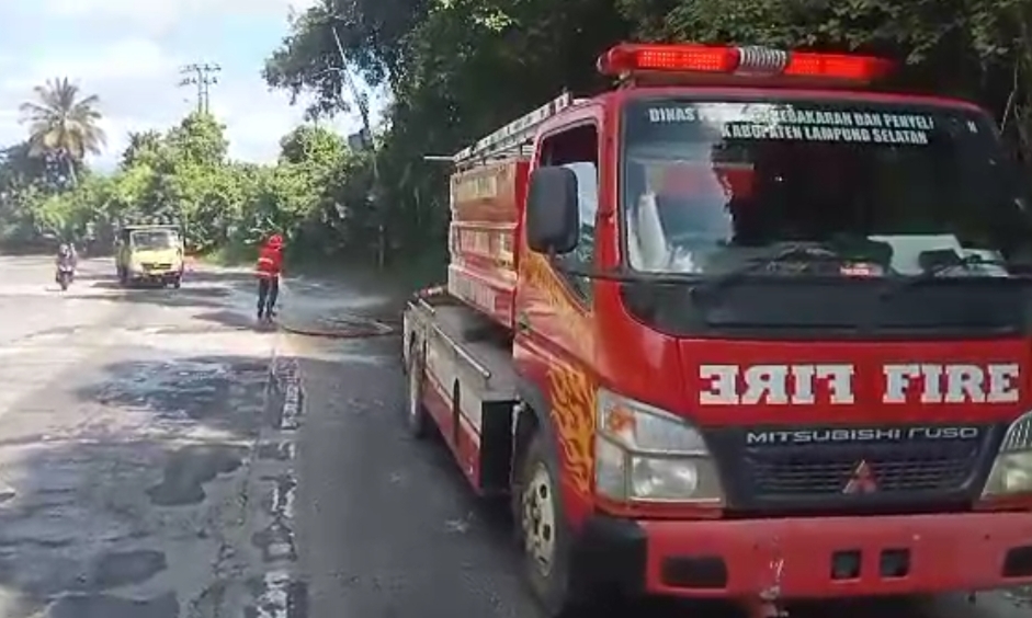Dengan adanya peristiwa itu, Pihak Damkarmat Lamsel yang mendapatkan laporan dari warga setempat untuk melakukan pembersihan jalan itu , agar tidak licin dan mencegah agar tidak terjadi kecelakaan.