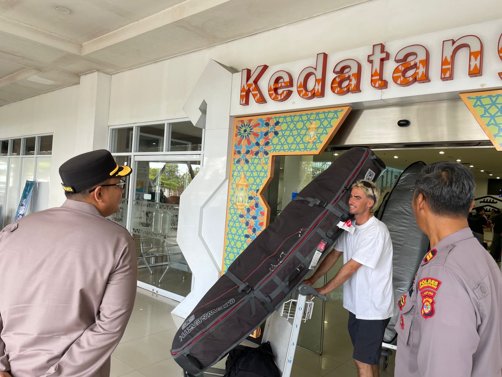 LAMSEL,– Dalam rangka pengamanan acara internasional World Surfing League (WSL) Krui Pro 2025, yang digelar pada 10-17 Juni 2025, Kapolres Lampung Selatan, AKBP Yusriandi Yusrin, pantau pengamanan kedatangan peserta dan official WSL di Bandara Radin Intan II, Natar, untuk memastikan kelancaran dan keamanan kedatangan peselancar dan tim pendukung mereka dari berbagai negara. Senin, 9 Juni 2025.
