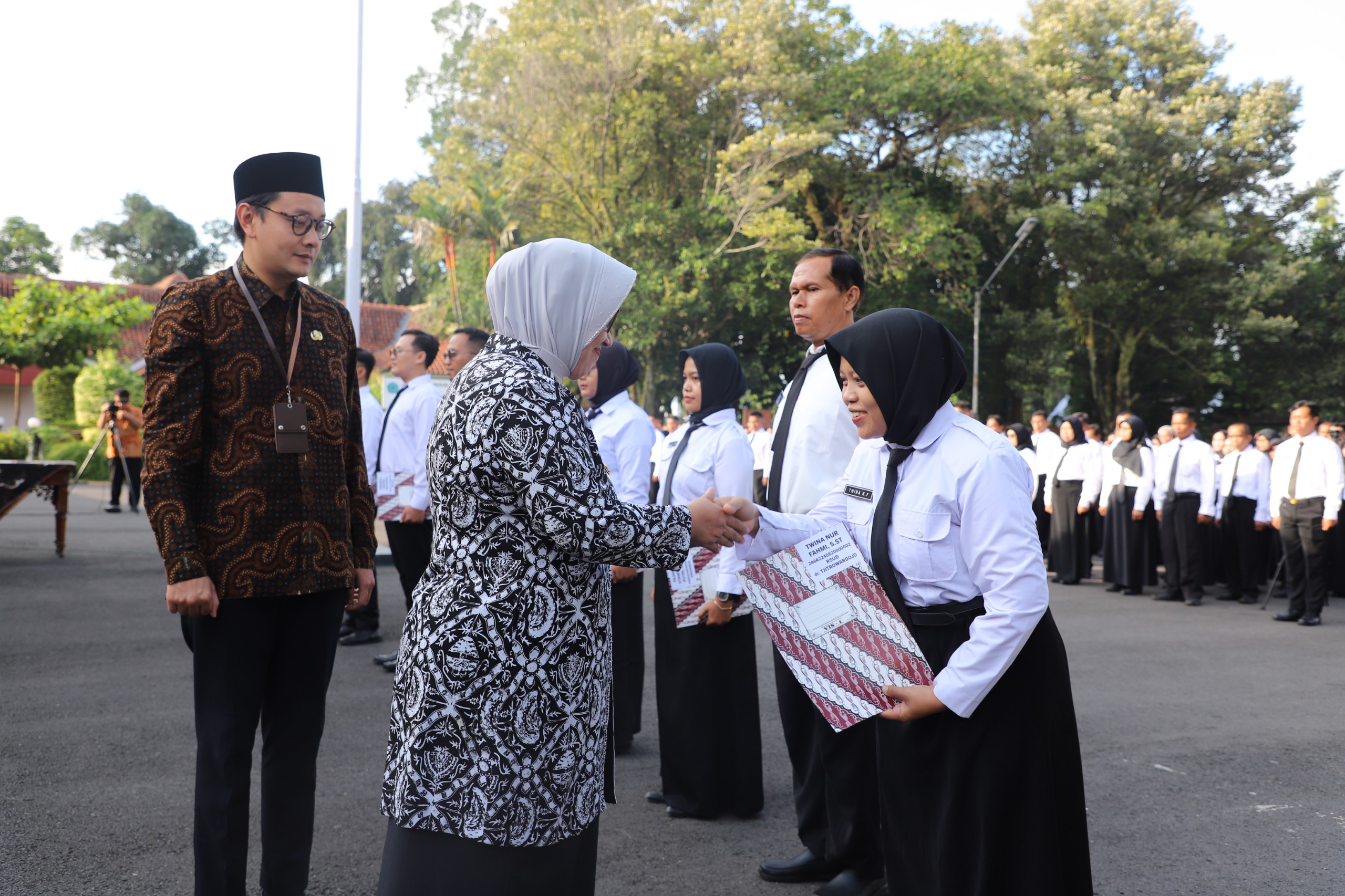 Menandai pengangkatan tersebut Bupati Purworejo Yuli Hastuti SH secara langsung menyerahkan Surat Keputusan Pengangkatan sekaligus mengambil Sumpah/Janji 876 orang tersebut di halaman Pendopo Rumah Dinas Bupati Purworejo, Kamis (26/6/2026).