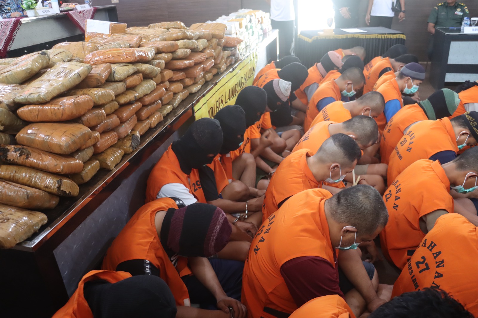 Kapolres Lampung Selatan, AKBP Yusriandi Yusrin, mengungkapkan bahwa total barang bukti yang berhasil disita mencakup 119,91 kilogram sabu dan 276,4 kilogram ganja.