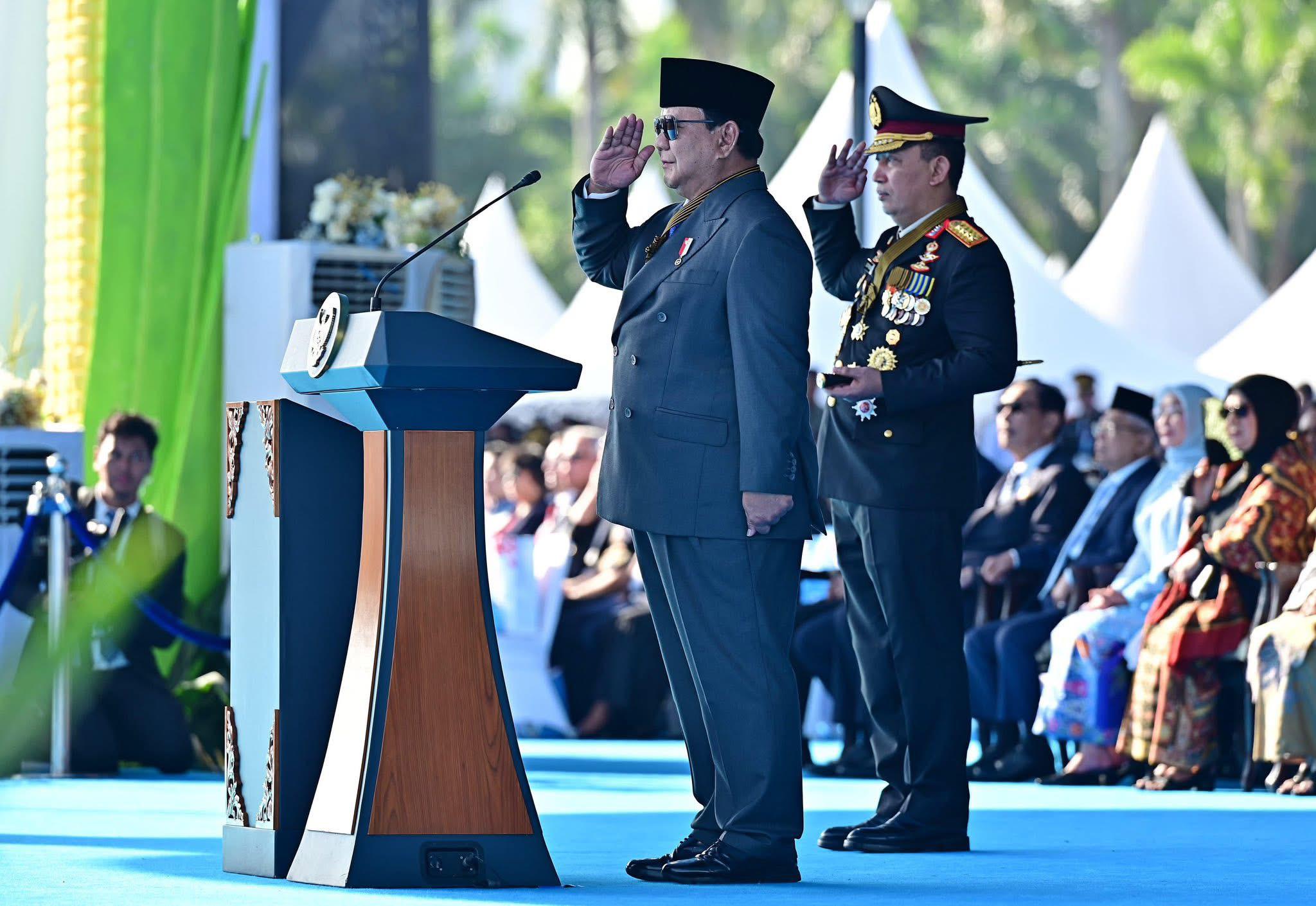Jakarta, -Presiden Prabowo Subianto bertindak selaku inspektur upacara memimpin jalannya Upacara Peringatan ke-79 Hari Bhayangkara Tahun 2025 yang digelar di Monumen Nasional (Monas), Jakarta, pada Selasa, 1 Juli 2025.