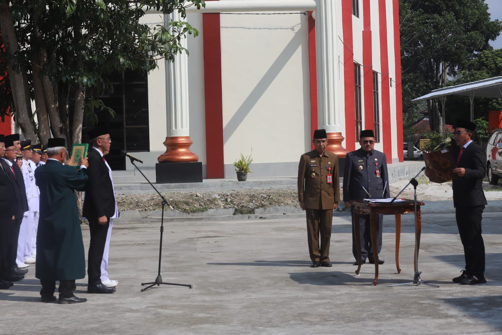Prosesi pelantikan berlangsung di Halaman Lamban Pancasila Lingkungan Kantor Pemerintah Daerah Lampung Barat Kelurahan Way Mengaku Kecamatan Balik Bukit.