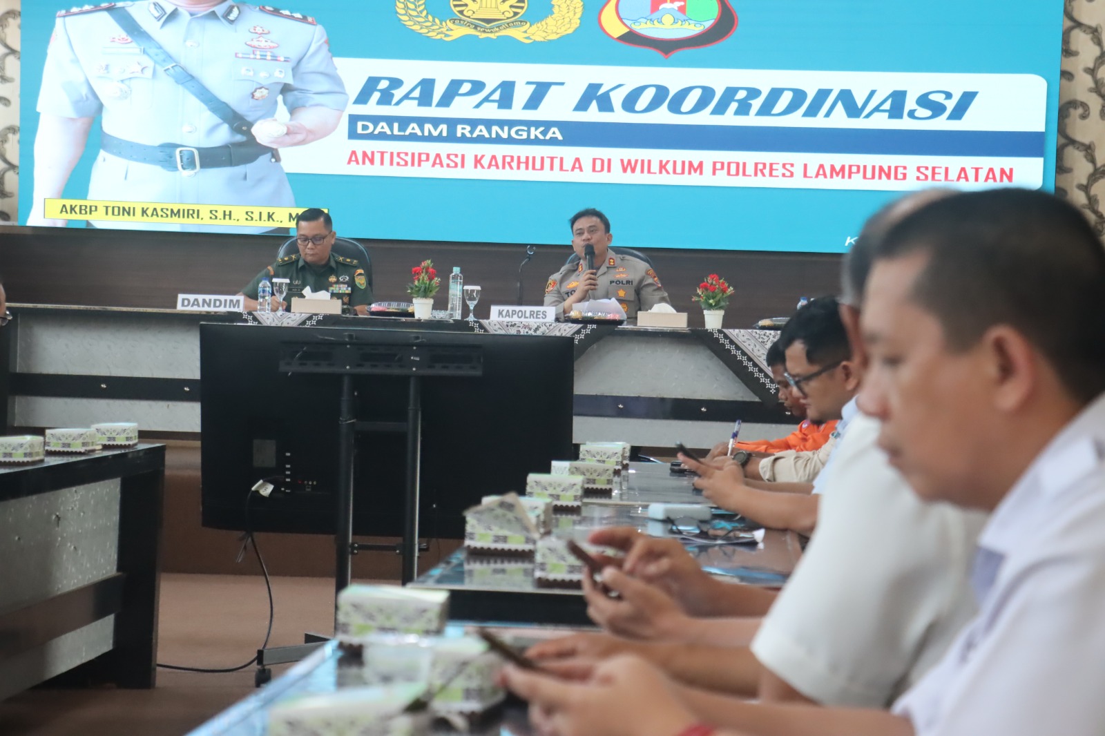 Dalam paparannya, Kompol Dafrison selaku Kabag Ops mengungkap bahwa terdapat lebih dari 10 kawasan hutan lindung dan produksi di Lampung Selatan yang sangat rentan terbakar.