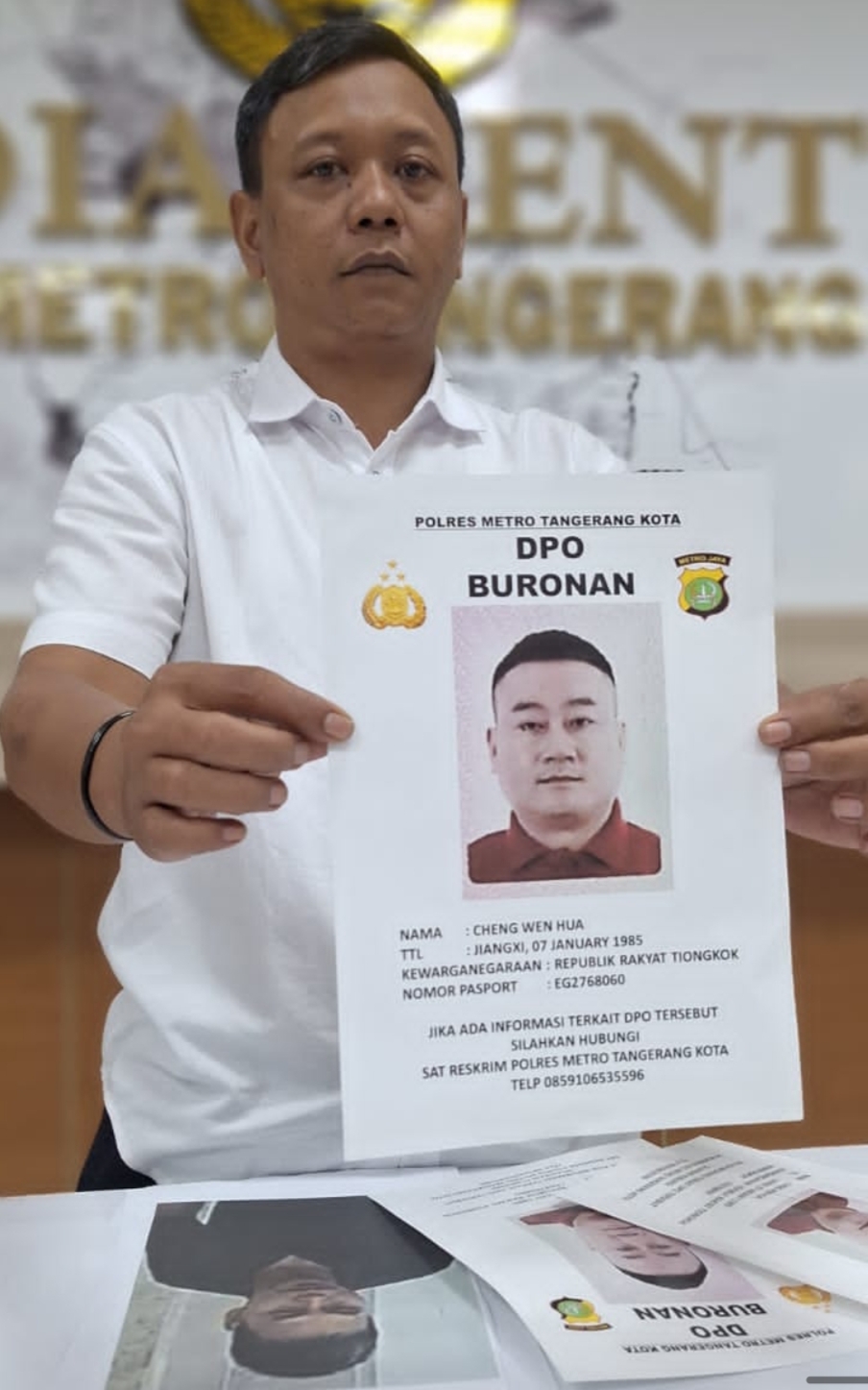 Polres Metro Tangerang Kota – Polda Metro Jaya juga menegaskan akan terus berkoordinasi lintas negara guna mempercepat penangkapan buronan tersebut. Sumber: Satreskrim Polres Metro Tangerang Kota.