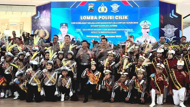 SEMARANG | Suasana Atrium The Park Mall Kota Semarang pada Rabu (10/9/2025) pagi, dipenuhi keceriaan anak-anak berseragam polisi cilik. Sebanyak 15 peleton yang mewakili Polres jajaran Polda Jawa Tengah berkompetisi dalam ajang Lomba Polisi Cilik yang digelar Ditlantas Polda Jateng dalam rangka Hari Keselamatan Lalu Lintas dan HUT Lalu Lintas Bhayangkara ke-70.