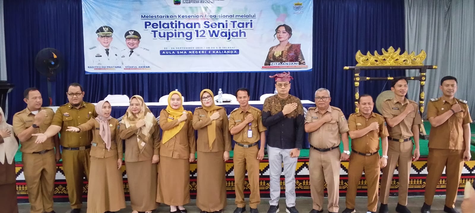LAMSEL,— Sebanyak 50 pelajar dari lima sekolah di Lampung Selatan mengikuti Workshop Tari Tuping 12 Wajah yang berlangsung selama tiga hari, mulai 22 hingga 24 September 2025.