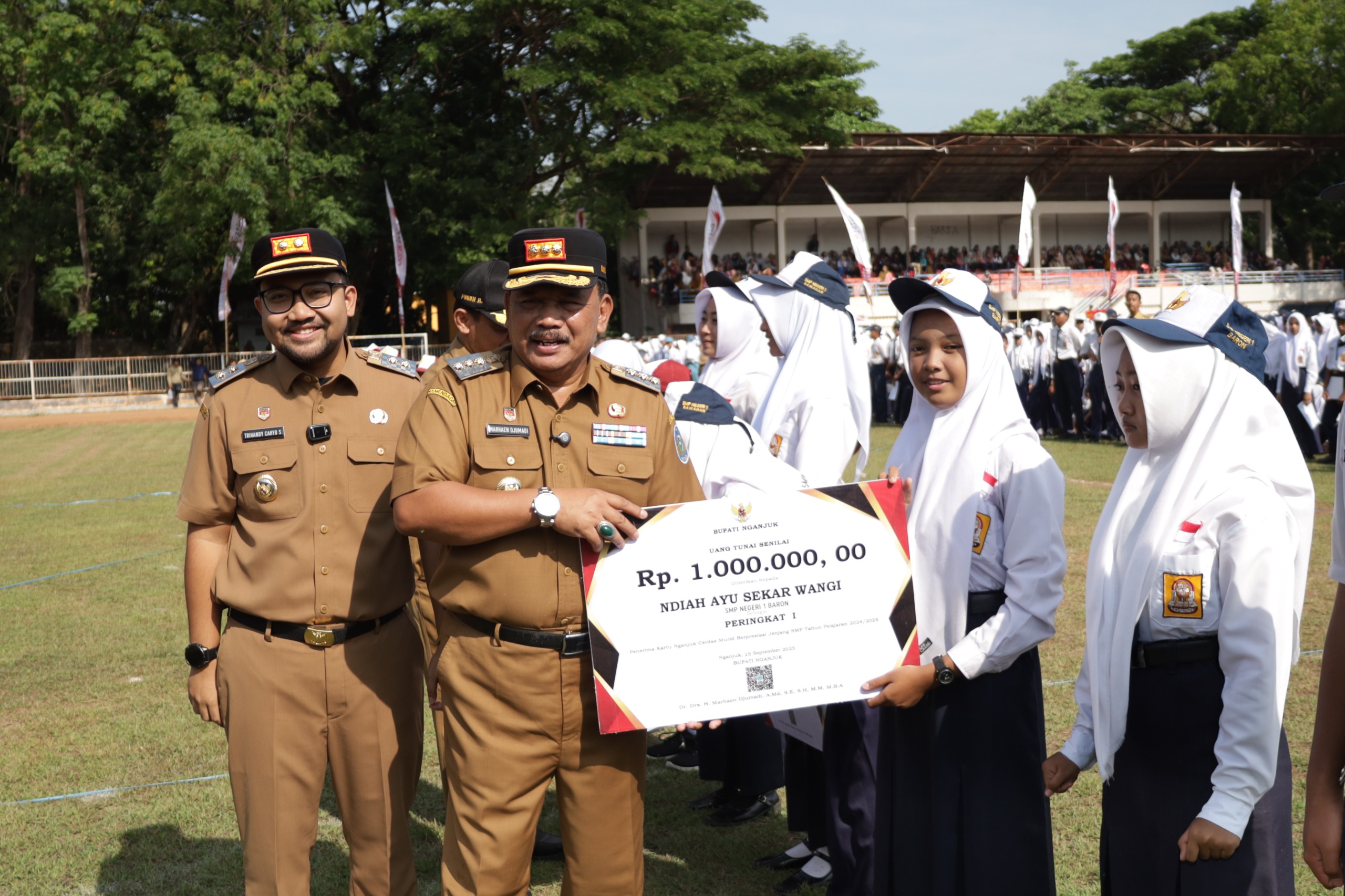 “Jangan lihat angka rupiahnya, lihat besarnya perhatian pemerintah! Hari ini kita satukan anak-anak, guru, dan orang tua dalam satu stadion megah. Kami ingin melahirkan generasi tangguh, bermental juara, dan kelak siap memimpin bangsa dari Kabupaten Nganjuk!”