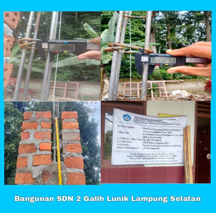 Gebrakkasus.com – LAMPUNG, – Proyek pembangunan ruang kelas SDN 2 galih Lunik,Desa galih Lunik Kecamatan Tanjung bintang kabupaten Lampung Selatan, diduga tidak sesuai spesifikasi teknik. Pekerjaan yang menyerap anggaran dari APBN tahun 2025 ini dipertanyakan soal pengawasan dari dinas terkait, Pada hari Rabu tanggal 22 Oktober 2025.