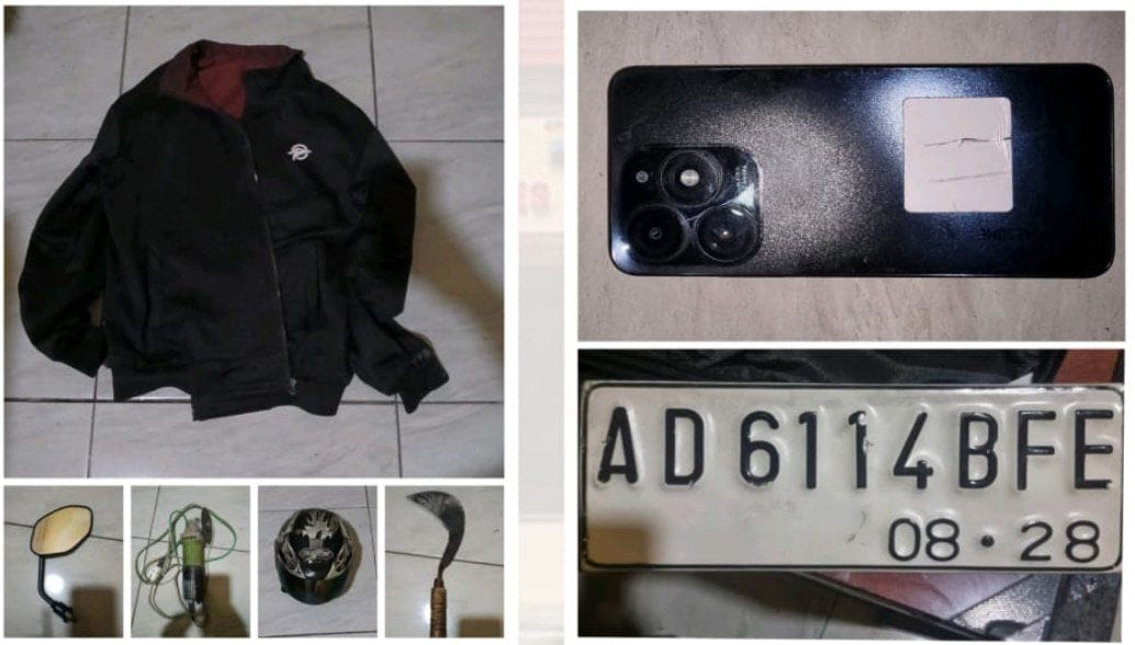 Dalam penangkapan tersebut, polisi turut mengamankan sejumlah barang bukti antara lain sepeda motor hasil curian, jaket dan helm yang digunakan pelaku, sepeda motor sarana kejahatan, serta beberapa barang hasil pencurian dari TKP lain.