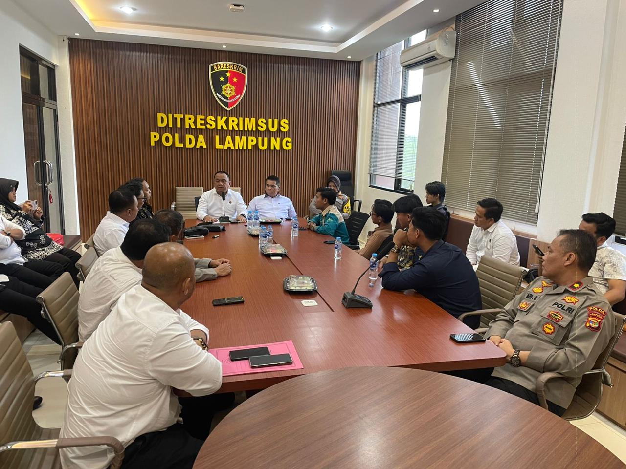 Gebrakkasus.com – LAMPUNG β Polda Lampung menerima audiensi perwakilan mahasiswa dari sejumlah perguruan tinggi di Lampung, Audiensi dipimpin langsung oleh Direktur Reserse Kriminal Khusus (Dirreskrimsus) Polda Lampung, Kombes Pol. Dery Agung Wijaya di Ruang Rapat Dirreskrimsus Polda Lampung, Senin (22/12/2025).