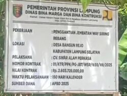 Terpantau para Pekerjaan tersebut dari pemerintah provinsi Lampung, dengan pekerjaan penggantian jembatan Way Siring Renang di Desa Bangun Rejo Kecamatan Ketapang Kabupaten Lampung Selatan.
