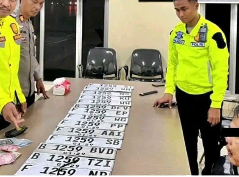Poto: sitaan 16 pelat nomor kendaraan palsu.