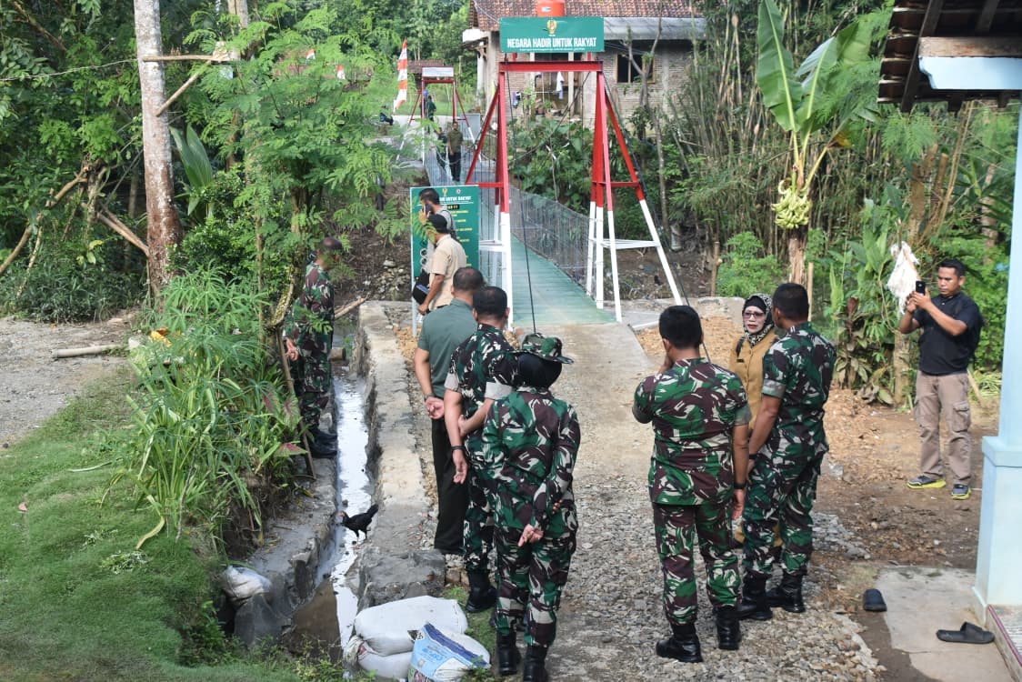 Jembatan sepanjang 50 meter dengan lebar 1,20 meter itu dicek langsung kekuatan dan fungsinya oleh jajaran pejabat Kodam IV/Dip. memastikan benar-benar aman dan bermanfaat bagi rakyat.