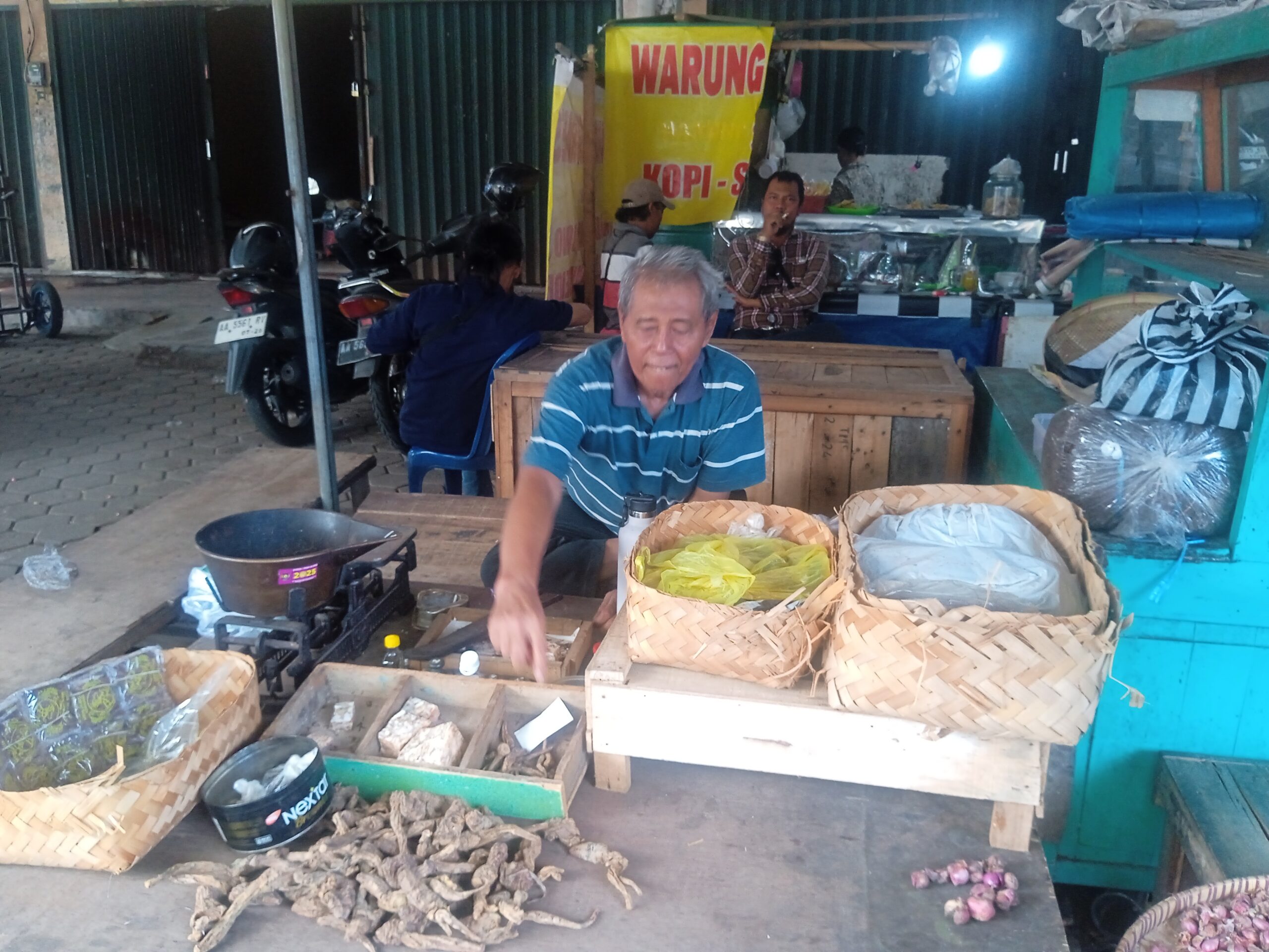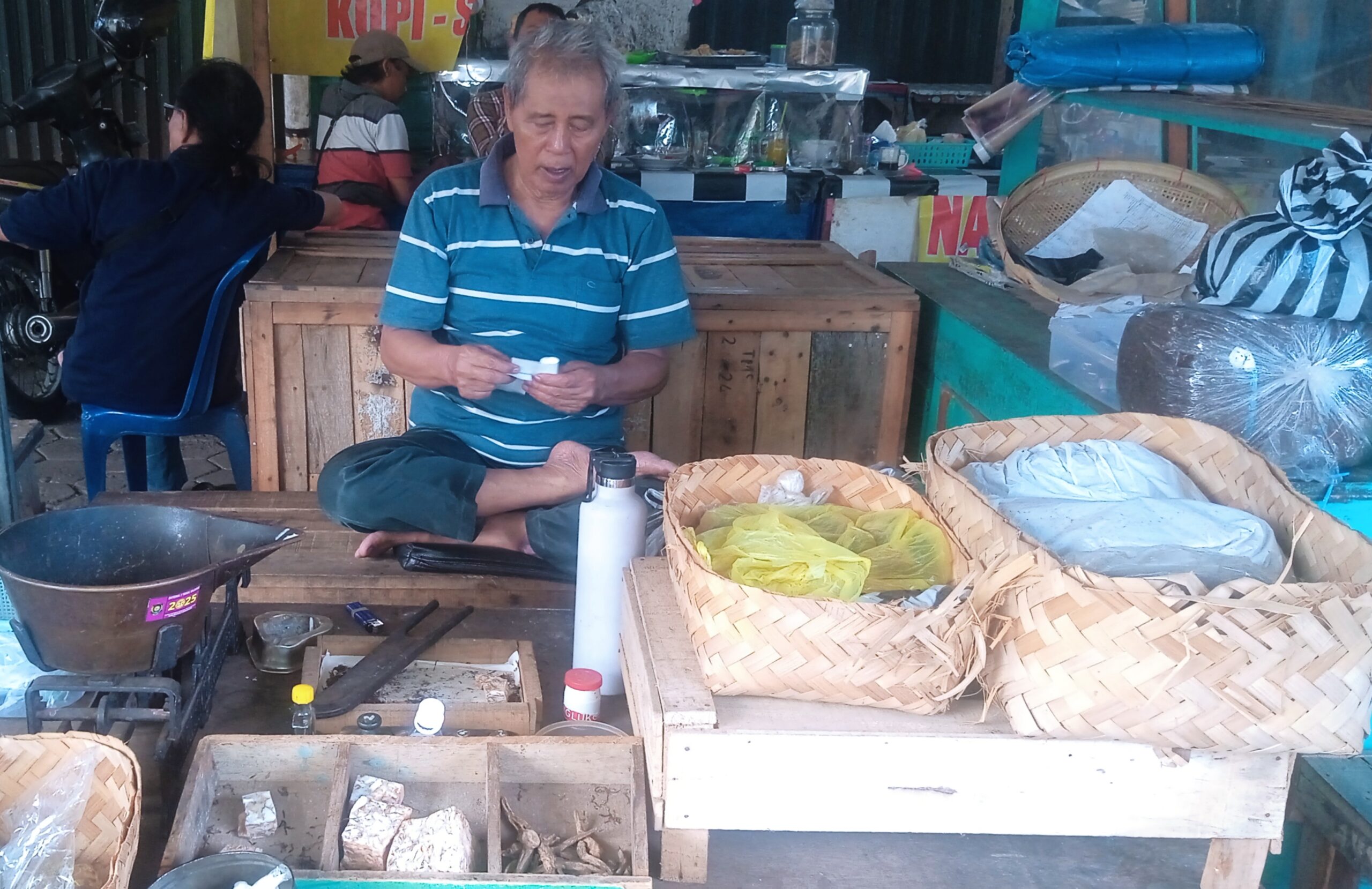 PURWOREJO |Di antara hiruk pikuk Pasar Kutoarjo, aroma khas klembak menyan masih setia bertahan. Wangi tembakau yang bercampur kemenyan dan akar klembak itu berasal dari lapak sederhana milik Ibang (72), pedagang klembak menyan yang telah berjualan hampir setengah abad.